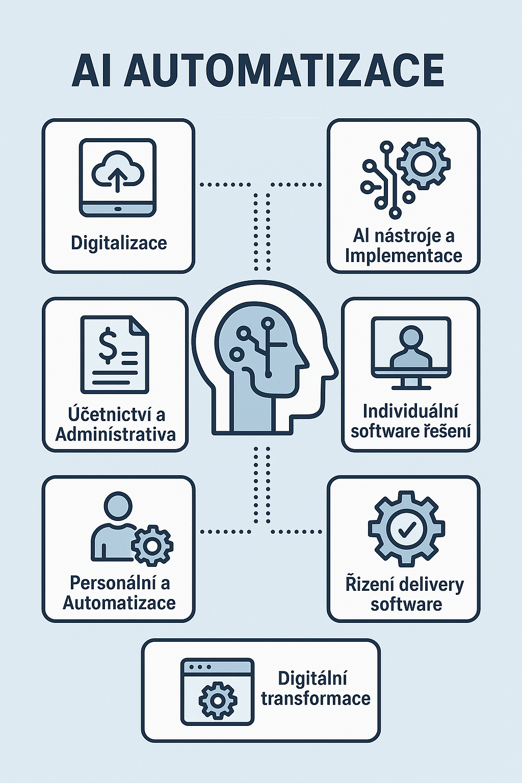 Konzultační procesy naší organizace jsou postaveny na dlouhodobých zkušenostech z informačního prostředí a vývoje klíčových dispozic konzultantů. Umíme nastavit rozvoje procesů tak, že zhodnotíme systémy řízení a operativy a návazně na to zapracujeme lidské zdroje do procesů AI automatizace a doslova implementujeme technologické řešení do klíčových dispozic procesů.
