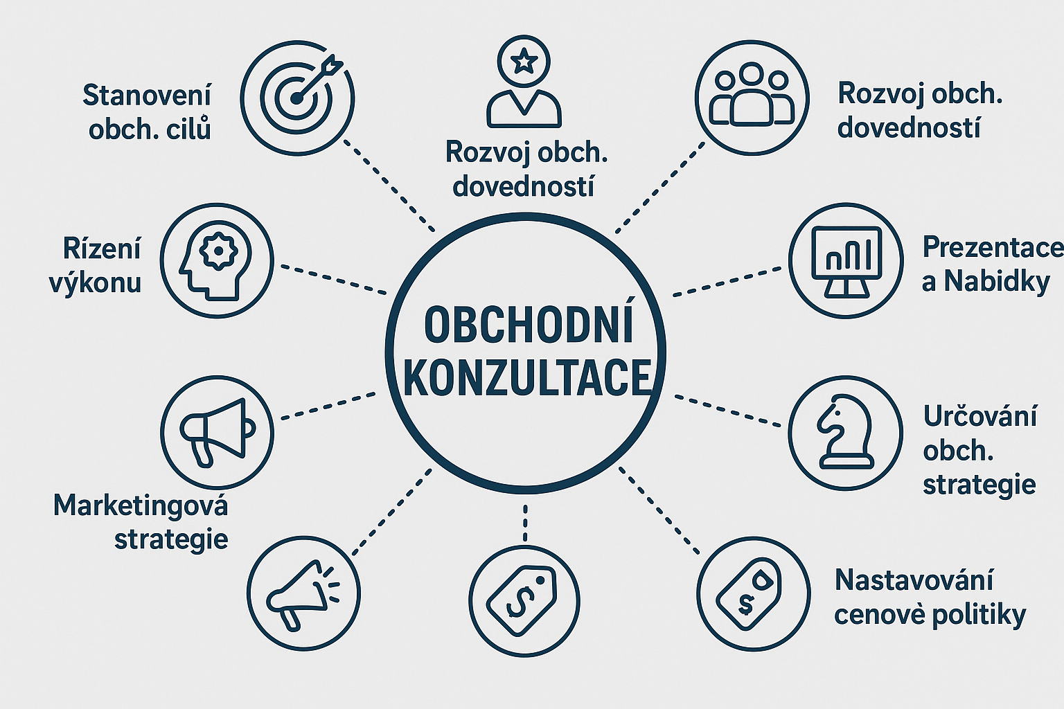 Naše konzultace obsahuji široké spektrum částí rozvoje pro obchodní stanovy podniku tak i pro jednotlivé týmy a obchodní zástupce. Nastavujeme sofistikované rozvojové programy pro zlepšování dovedností, schopností, připravenosti, obchodního leadershipu, obchodní administrativy, obchodní komunikace tak i řešení obchodní strategie podniku a organizace.