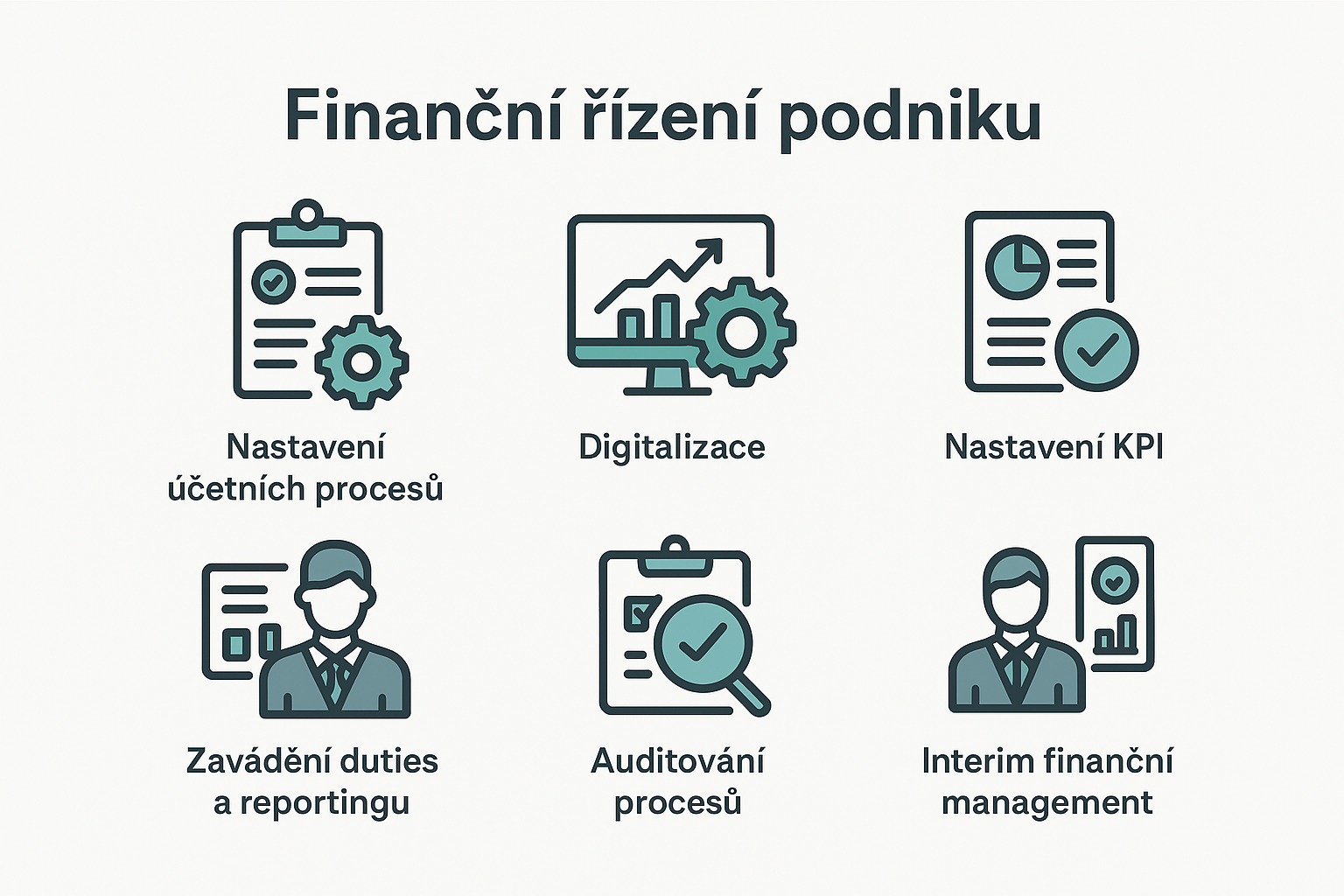 Naše konzultace podporují systémy rozvoje finanční politiky organizace a umíme si poradit i ve složitých provozech a organizacích. Naši konzultanti mají zkušenosti více než 26 lety praxe v oblasti řízení financí, provozu a vedení týmů.